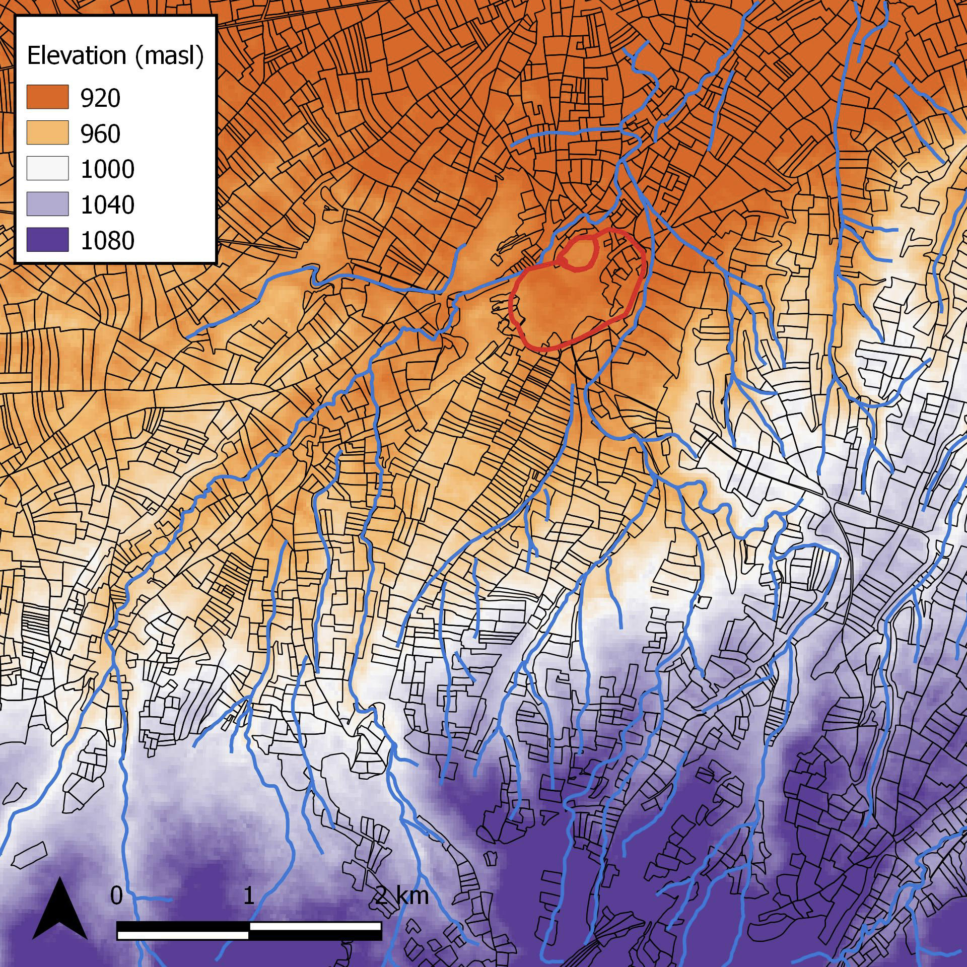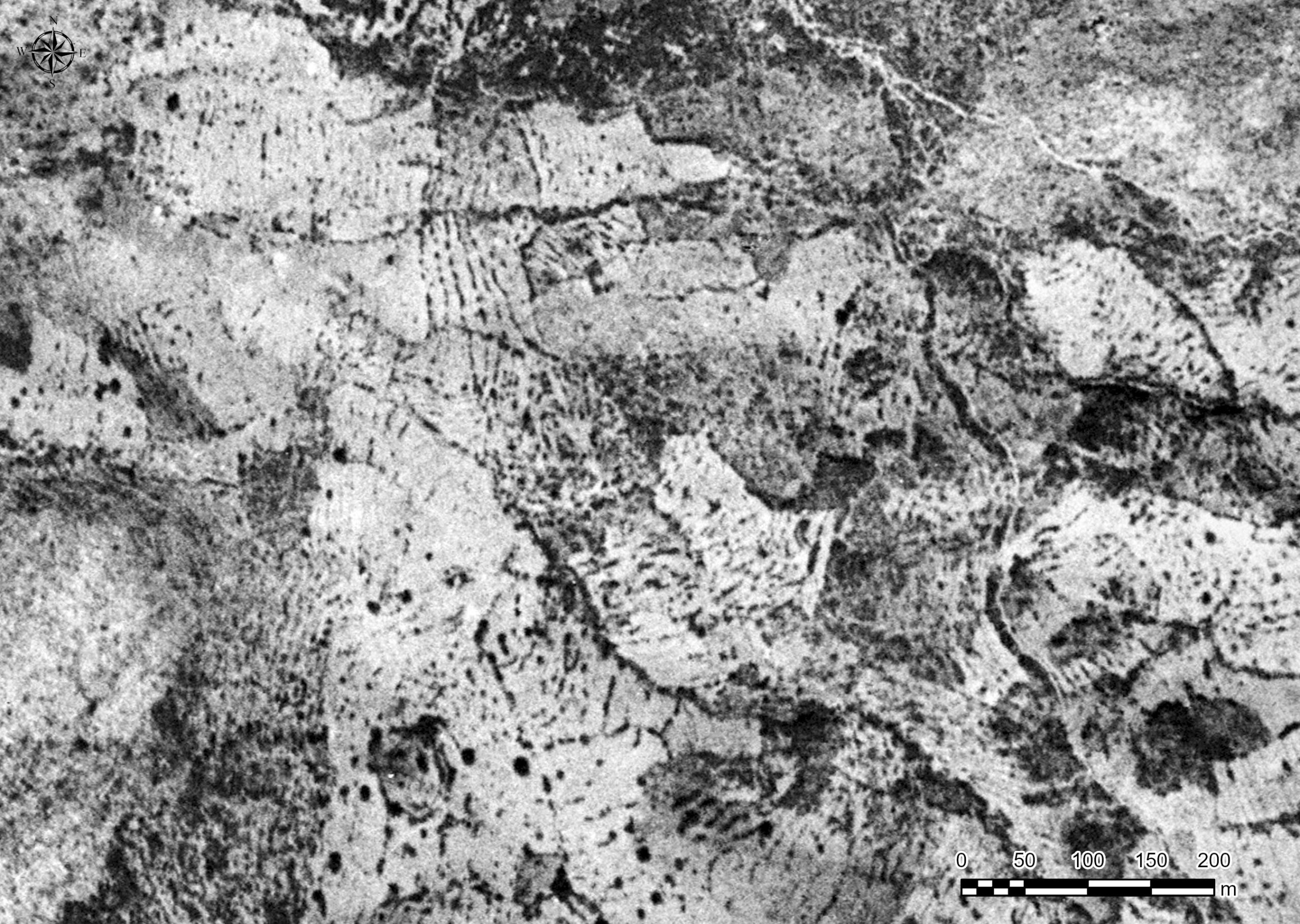 The catalogue utilizes a combination of modern high-resolution satellite imagery, historical orthophotography (pre-1945), and advanced Geographic Information Systems (GIS) modeling. Methodologies on display include: Historic Landscape Characterization (HLC), Normalized Difference Vegetation Index (NDVI) filtering to identify constructions, Detailed modeling of topography, elevation (masl), and terrain slope, Hydrological analysis of actual and reconstructed stream/river routes, Systematic mapping of agricultural features, such as historical field boundaries, stone field walls, and agricultural terraces.